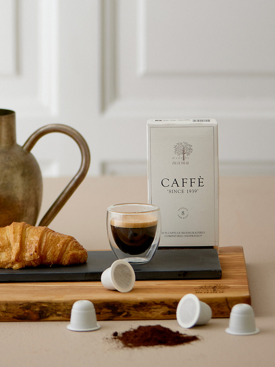 Vores bæredygtige kaffekapsler er lavet af majsstivelse og sukkerrør, og produceret med ren sol-, vind- og vandenergi. Indeni gemmer der sig vores egen espresso Since 1939 – en dyb og karakterfuld kaffe, skabt til dig, der elsker en kraftig espresso eller en klassisk sort kaffe.